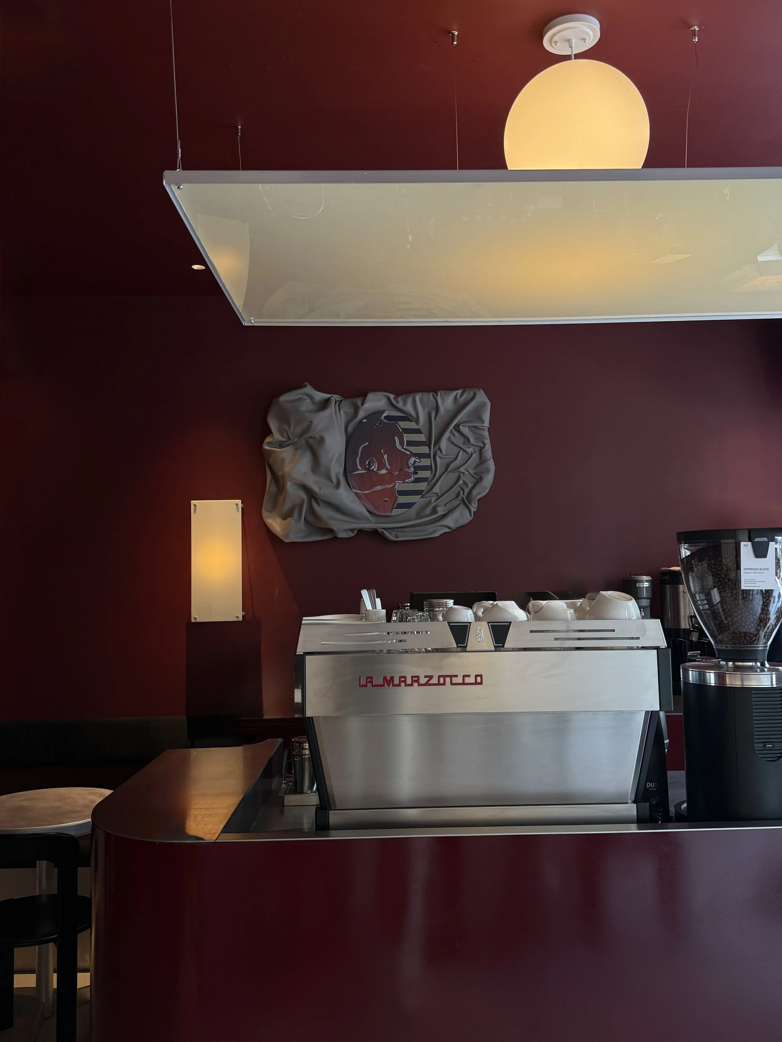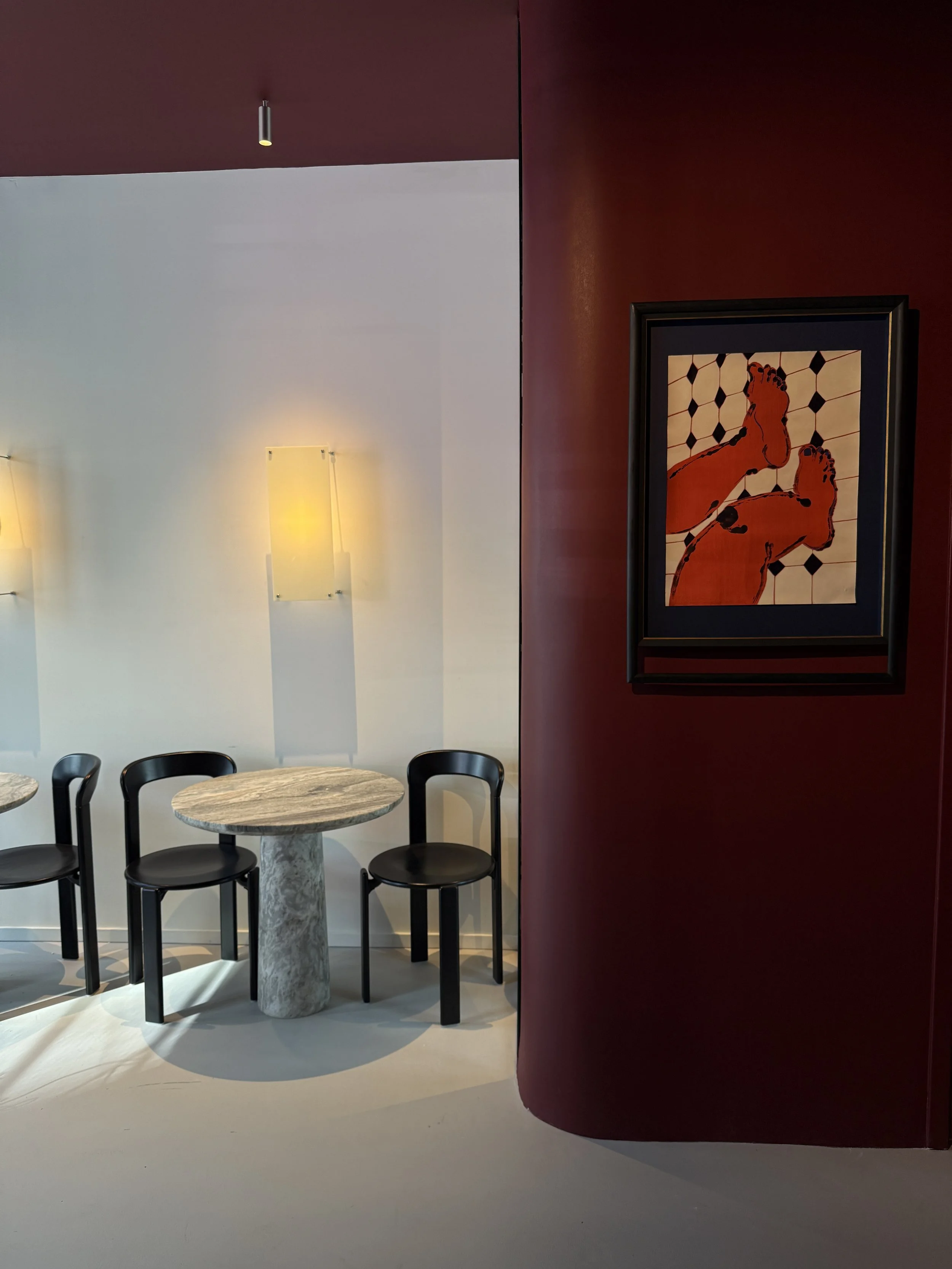 In this newest space, Ivana introduced a burgundy palette to the interior. “I rarely play with strong color, so this felt like a leap,” Ivana admits. “But burgundy struck the perfect balance: elegant yet grounded. It gave us permission to be a little daring.” The result is a cohesive dialogue between art and environment: fearless work framed by a hue that’s just as confident.